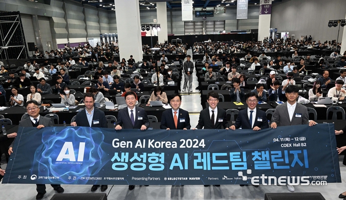 과학기술정보통신부와 한국정보통신기술협회(TTA), 초거대AI추진협의회가 주최·주관하는 '생성형 AI 레드팀 챌린지'가 11일 서울 삼성동 코엑스B홀에서 열렸다. 12일에는 AI 안전성 관련 콘퍼런스와 챌린지 시상식이 개최된다.