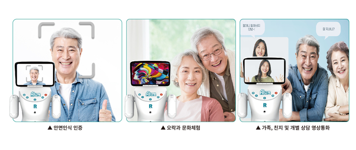 주요 기능은 △예방 건강관리 지원 △원격 화상 독거노인 관리 미니 인공지능 지원 △혈압측정, 혈당 및 체지방 체성분 관리 △초개인화를 위한 안면인식 및 개인별 고유번호인증 맞춤정보제공 △스마트 원격제어 시스템 관리 △개인 영상통화지원 △인지 선별검사 및 인지능력 강화프로그램 제공 △음악 댄스 등 오락과 문화 체험 △건강정보제공 △쳇GPT 기능 지원 및 영어학습 △뉴스 기사 및 알림 등 안내 기능 △원격 화상 건강상담 등이다.