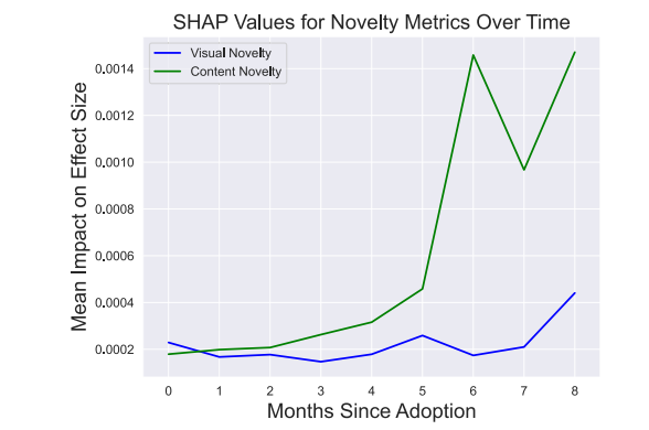 비주얼 참신성과 콘텐츠 참신성 추이 (사진=PNAS nexus)