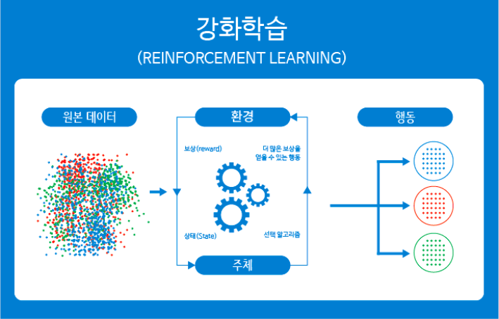 이렇게 보상이나 벌칙이 있는 것은 어떯게 보면 최상의 결과를 내기 위한 일종의 장치와도 같다. 이것은 우리 생활뿐만 아니라 인공지능에도 그대로 적용된다. 인공지능에는 ‘강화학습(Reinforcement Learning)’이라는 것이 있다.